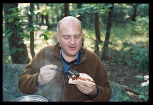 On a camping/hiking trip to Cloudland Canyon state park. It was the second time I had been on a camping trip. I came to learn a lot about camping, as on the previous trip with equally unexperienced people, we had bread and peanut butter for dinner and breakfast. Richard however, is apparently a well experienced camper. He came equipped with tortillas and refried beans and was the first to have his food ready.