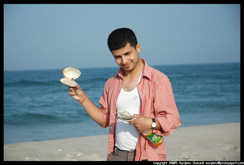Ankur Mani, a fellow intern in NJ. We visited the Island Beach state park that day. Ankur was collecting some clam shells. Picture taken with 18-70mm DX AFS digital lens (27-105mm 35mm equivalent), with the zoom at the 70mm. Aperture Priority mode on a Nikon D70.