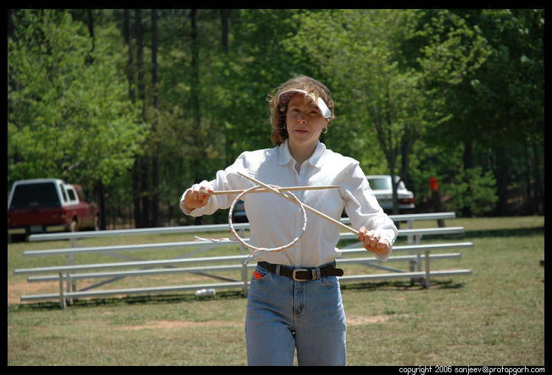 The forward journey was alright, I was awake and talking. We reached there, took a map from the visitor center and started on the trails. I had been to Redtop Mt. State park earlier but I had never seen it so lush green. The trees were light green all over, the leaves budding in the late spring. The weather was perfect, sunny, interspersed with clouds. First we took a little loop along the lakeshore (Lake Allatoona). On the way, I noticed a lot of older women dressed in traditional southern dresses, grilling and serving people. We walked a bit further and under a canvas roof, many kids and an old lady were sitting. I guess they were celebrating "ways of the south" or something similar. So, the old lady was teaching the kids how to make dolls out of discarded corn husk. There I took the portrait of the southern girl.