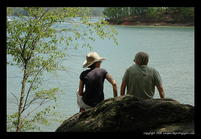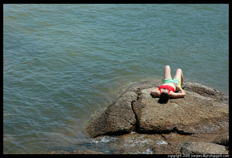 Finished there, we continued to a small trail and reached another lake shore. This one was a bit more solitary. We saw a mermaid resting on the rocks. We sat by the side of the lake, on the rocks. I took my shoes off and dipped my feet in the lake water. It was cold and soothing on the warm summer day. We sat there and talked for a while.