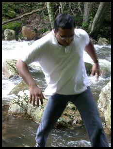 the rocks slipped and the situation became dicey. What to do? Ghosh stood there