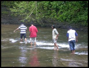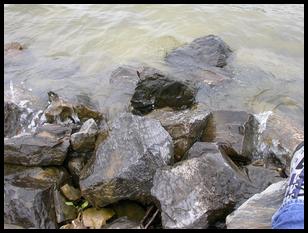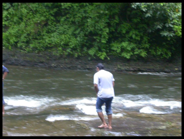 to the river bank when he splashed his foot into the river. Look closely and you