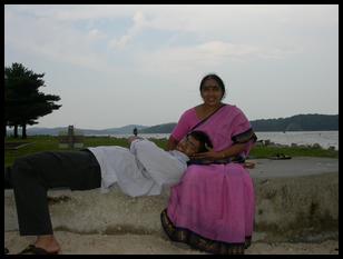 | Auntiji also came down to the river. |